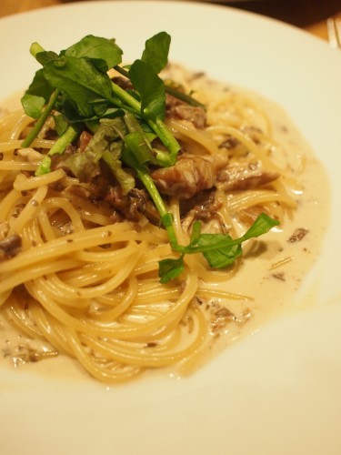パスタは秋らしく栗とポルチーニのクリームパスタ。