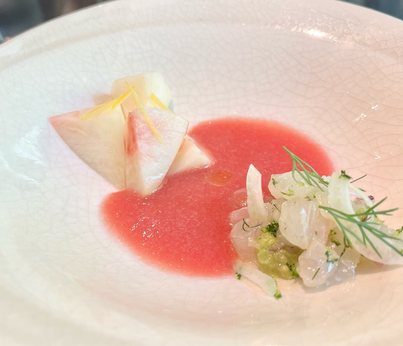 スズキ、ブダイ、青ゆず、フェンネルのタルタル。