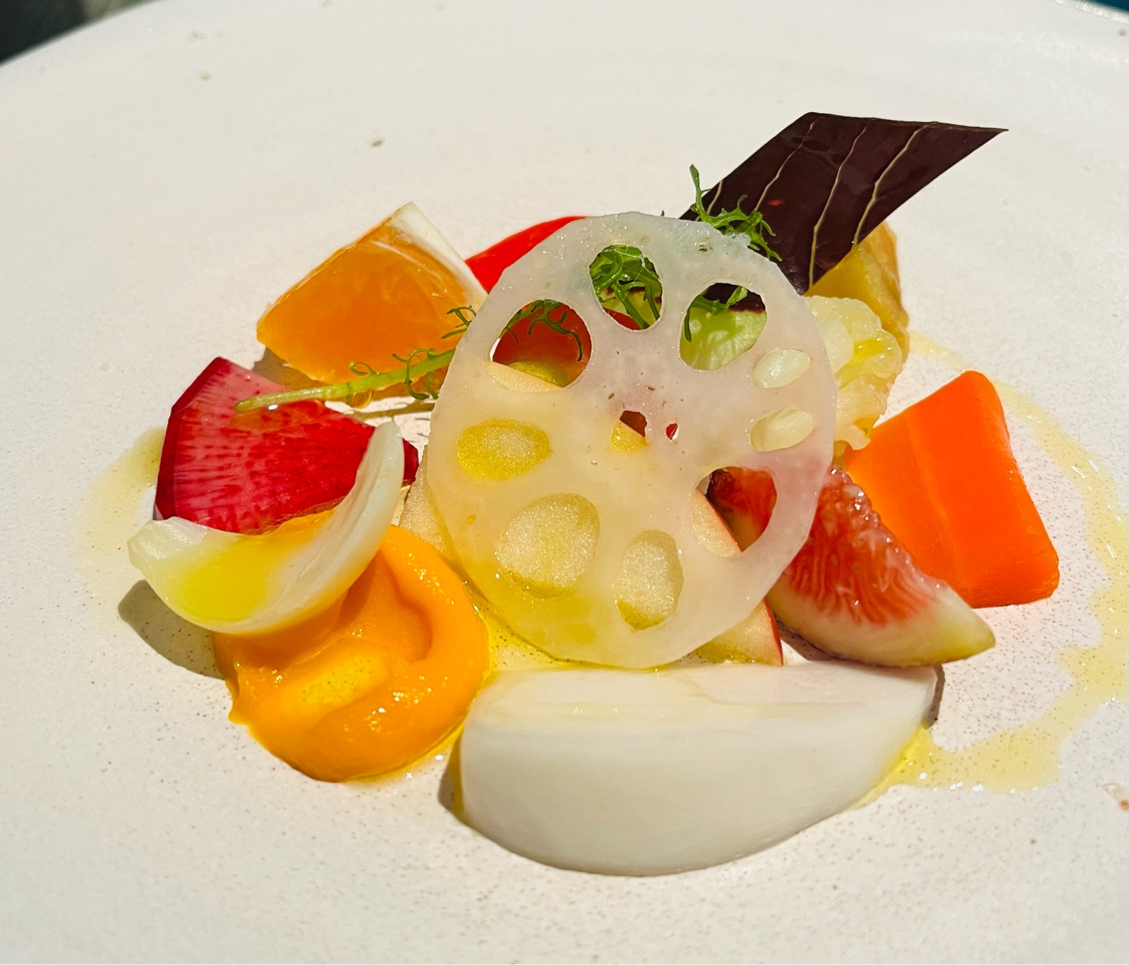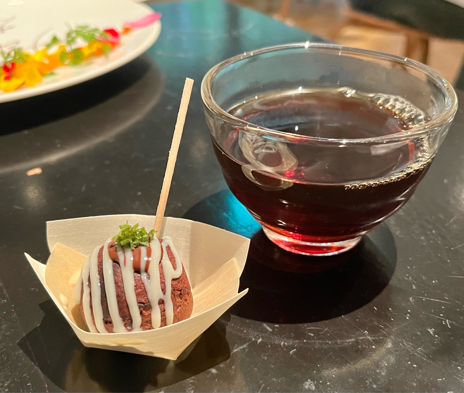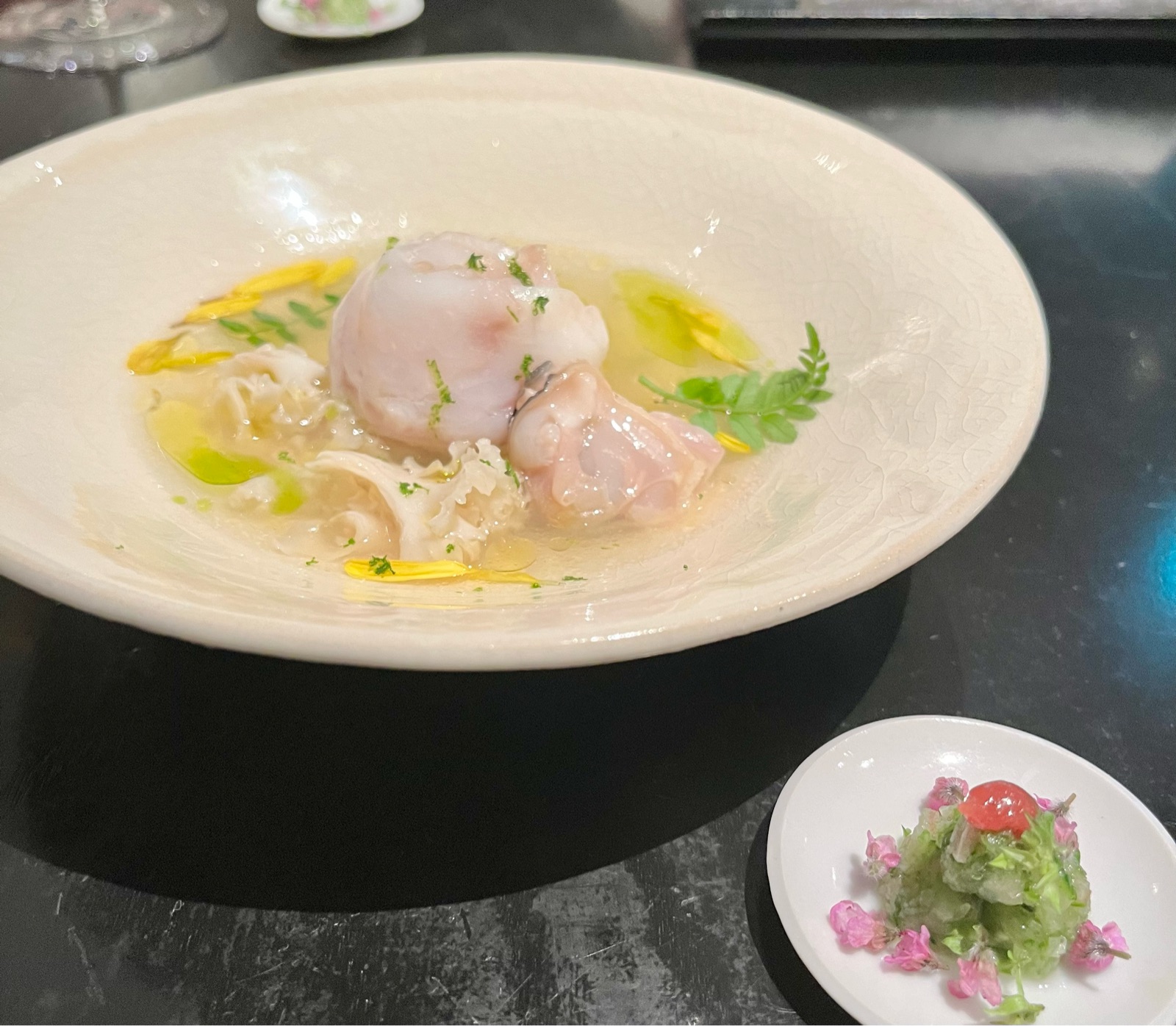 舞茸のジュ、牛蒡、芹、柚子、銀杏、黒七味。