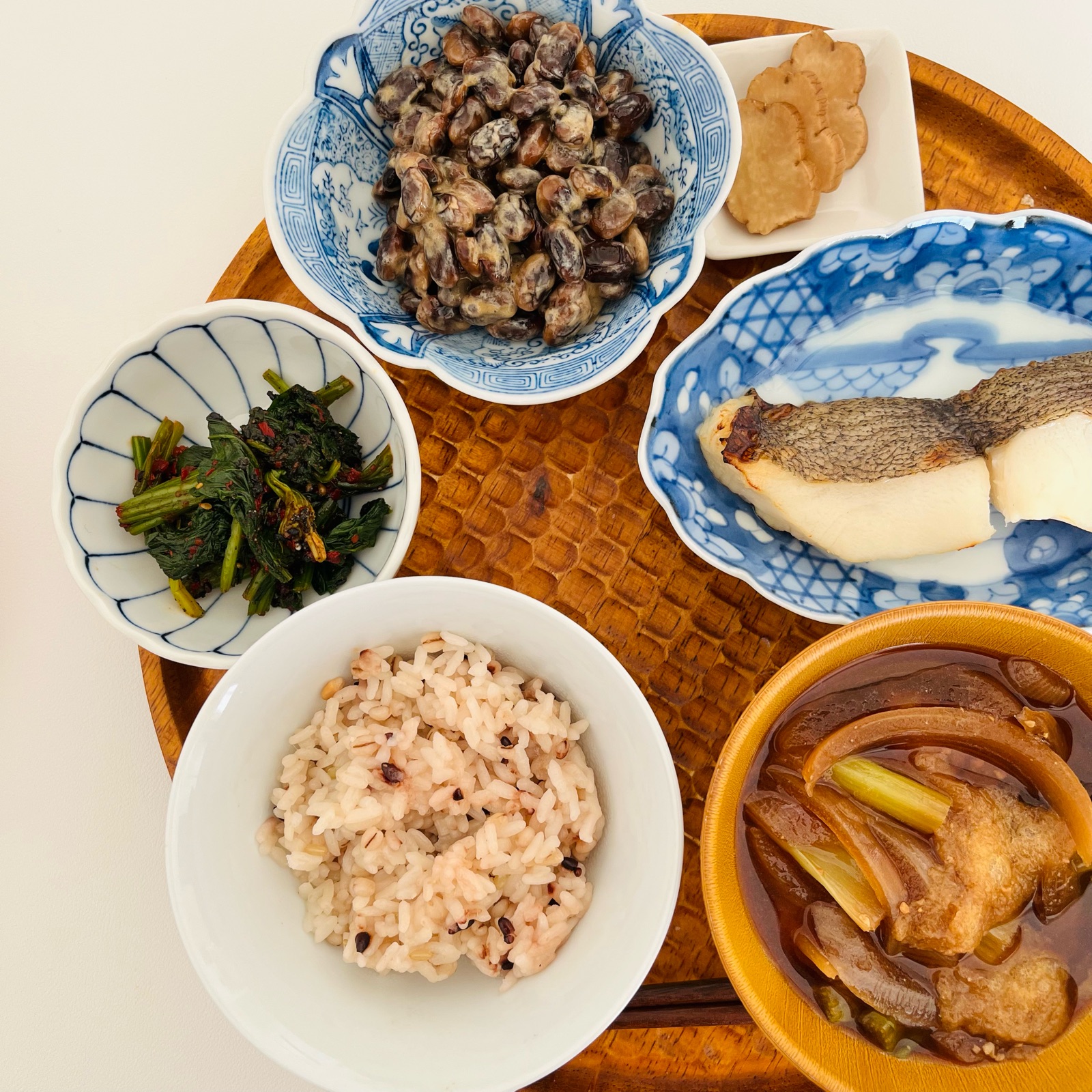 この日もお魚、おひたし、納豆に
