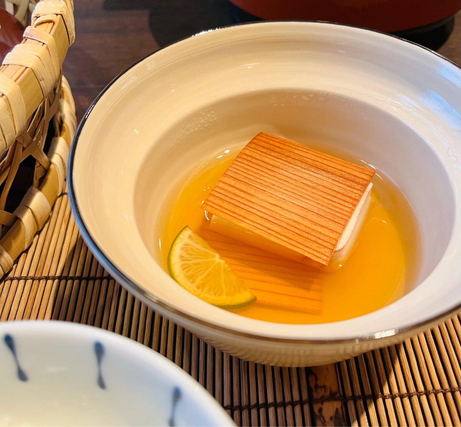 湯豆腐にはほんのり木の香り。