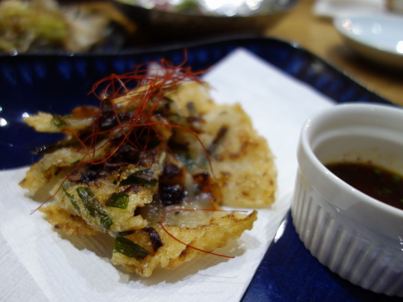 「魚介たっぷり」とメニューに書かれていたのでオーダーした磯チヂミ @680