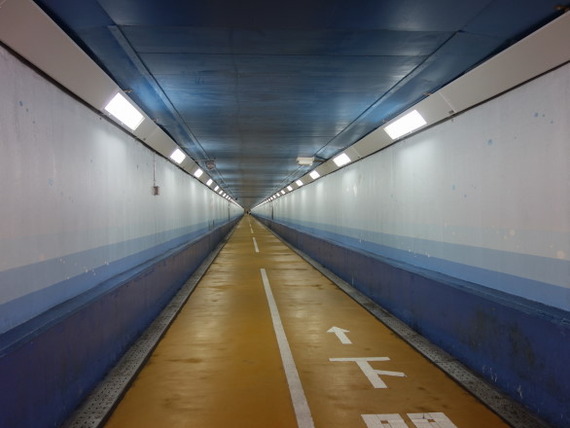 トンネル内は自転車走行禁止なので手押しで渡りますよー。