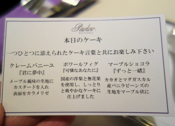 テーブルには、この日のケーキの説明書きが置かれておりました。