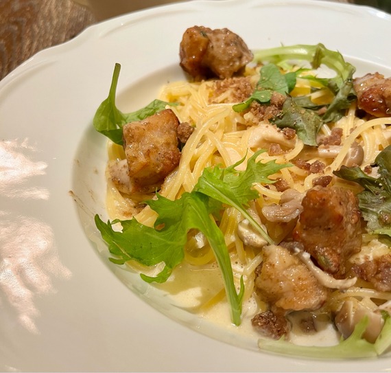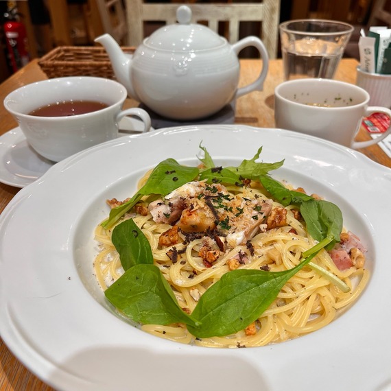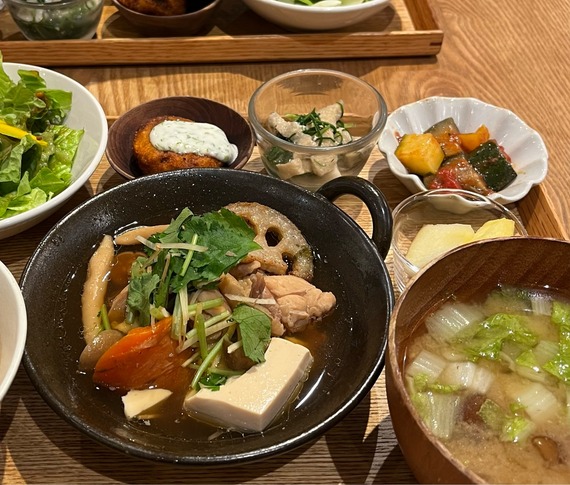 連休初日に伺った楽天イベントの前に お昼ごはんを食べようと前回のイベント時に訪問しておいしかったFIVE EIGHT KAFEへ。前回いただいたのは辛さ控えめの麻婆豆腐。 今回のランチメニューは塩サバと肉じゃが。もしくは、鶏肉飯とスープ小籠包。塩サバは家で食べてるし、肉じ